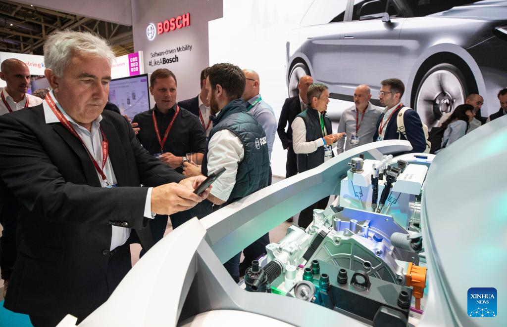 MÚNICH, 9 septiembre, 2025 (Xinhua) -- Personas visitan la zona de exposición de Bosch durante la IAA Mobility 2025, en Múnich, Alemania, el 9 de septiembre de 2025. La IAA Mobility 2025, una de las ferias de movilidad más grandes del mundo, comenzó aquí el martes, con fabricantes y proveedores de automóviles globales mostrando vehículos eléctricos, conducción autónoma e innovaciones impulsadas por software. (Xinhua/Zhang Fan)