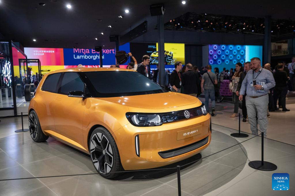 MÚNICH, 9 septiembre, 2025 (Xinhua) -- Personas observan un Volkswagen ID. EVERY1 en la zona de exposición de Volkswagen durante la IAA Mobility 2025, en Múnich, Alemania, el 9 de septiembre de 2025. La IAA Mobility 2025, una de las ferias de movilidad más grandes del mundo, comenzó aquí el martes, con fabricantes y proveedores de automóviles globales mostrando vehículos eléctricos, conducción autónoma e innovaciones impulsadas por software. (Xinhua/Zhang Fan)