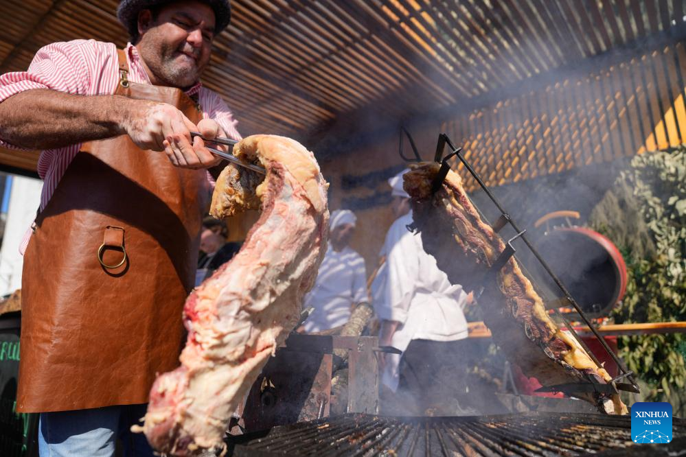 MONTEVIDEO, 9 septiembre, 2025 (Xinhua) -- Una persona cocina carne a las brasas durante la edición 120 de la Exposición Internacional de Ganadería y Muestra Internacional Agro Industrial y Comercial "Expo Prado", en Montevideo, capital de Uruguay, el 9 de septiembre de 2025. (Xinhua/Nicolás Celaya)