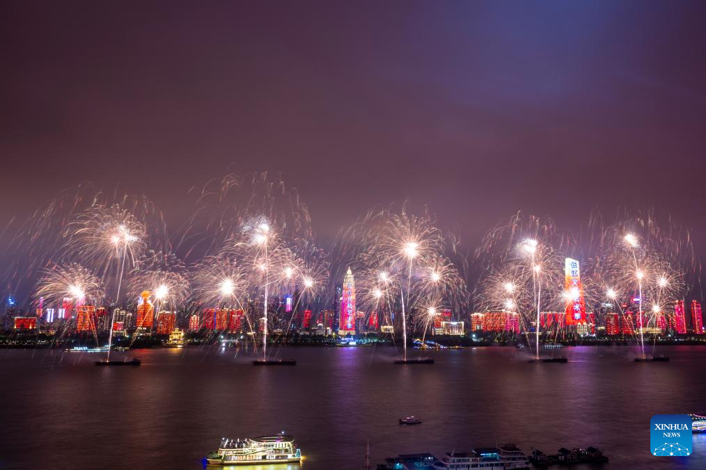 WUHAN, 12 septiembre, 2025 (Xinhua) -- Imagen del 12 de septiembre de 2025 de fuegos artificiales durante la ceremonia de apertura de la temporada cultural y artística del río Yangtse 2025, en Wuhan, en la provincia de Hubei, en el centro de China. La ceremonia de apertura de la temporada cultural y artística del río Yangtse 2025 se celebró el viernes en Wuhan. El evento se desarrollará del 12 de septiembre al 30 de octubre, con una serie de actividades entre las que se incluyen exposiciones de arte, una semana de cine y una semana de música. (Xinhua/Wu Zhizun)