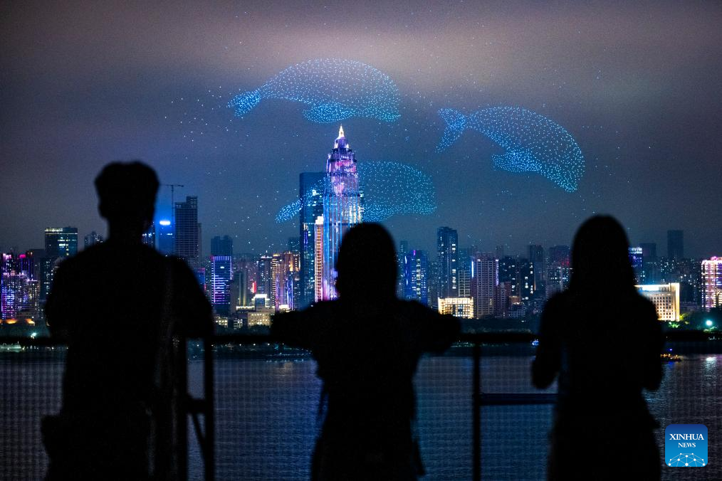 WUHAN, 12 septiembre, 2025 (Xinhua) -- Personas observan una presentación con drones durante la ceremonia de apertura de la temporada cultural y artística del río Yangtse 2025, en Wuhan, en la provincia de Hubei, en el centro de China, el 12 de septiembre de 2025. La ceremonia de apertura de la temporada cultural y artística del río Yangtse 2025 se celebró el viernes en Wuhan. El evento se desarrollará del 12 de septiembre al 30 de octubre, con una serie de actividades entre las que se incluyen exposiciones de arte, una semana de cine y una semana de música. (Xinhua/Wu Zhizun)