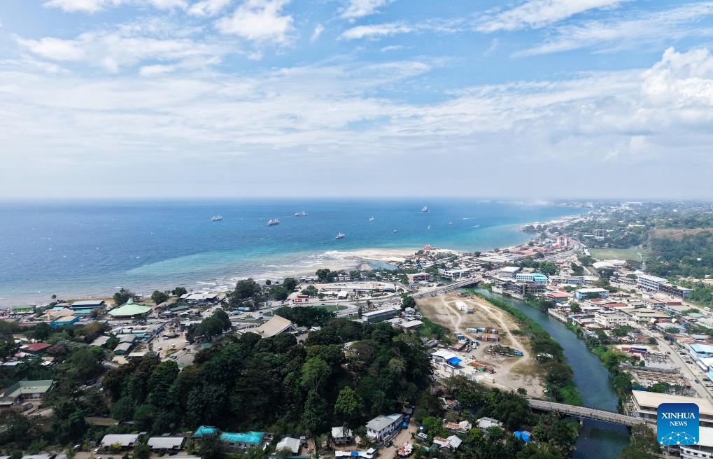 HONIARA, 12 septiembre, 2025 (Xinhua) -- Vista aérea tomada con un dron el 8 de septiembre de 2025 de una vista de Honiara, Islas Salomón. (Xinhua/Ma Ping)