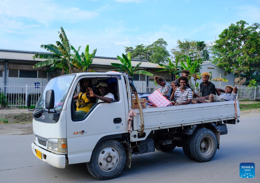 HONIARA, 12 septiembre, 2025 (Xinhua) -- Imagen del 9 de septiembre de 2025 de lugareños viajando en una camioneta, en Honiara, Islas Salomón. (Xinhua/Liu Xiaoyu)