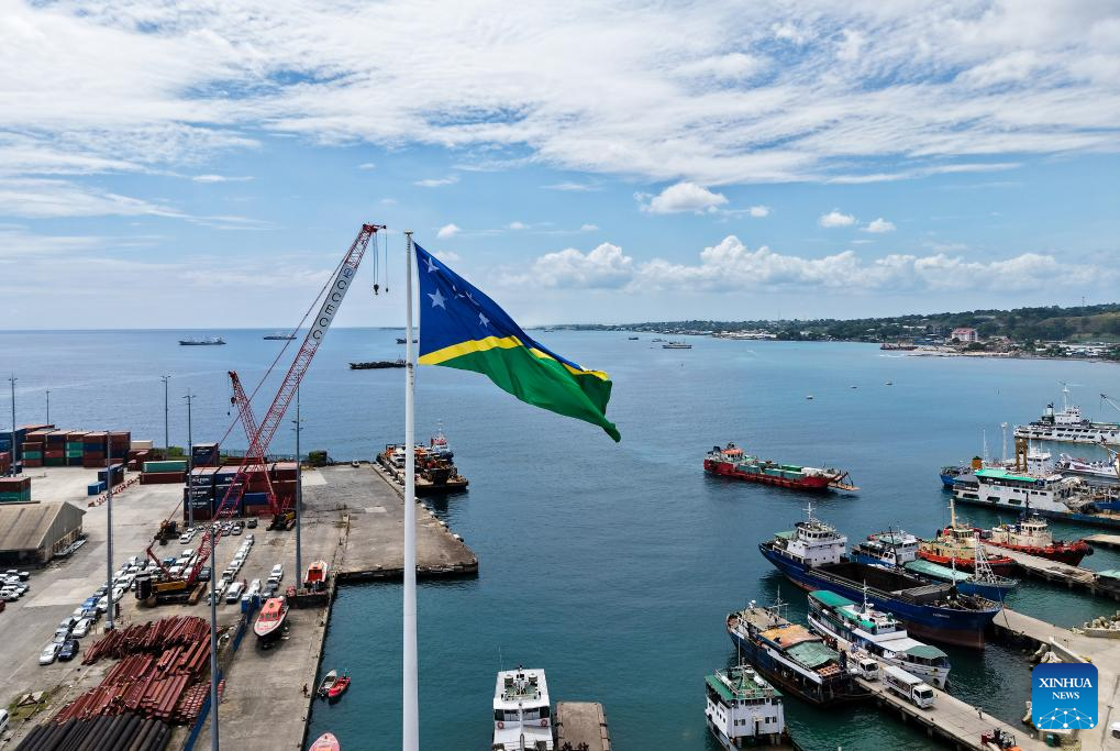 HONIARA, 12 septiembre, 2025 (Xinhua) -- Vista aérea tomada con un dron el 8 de septiembre de 2025 de un puerto, en Honiara, Islas Salomón. (Xinhua/Ma Ping)