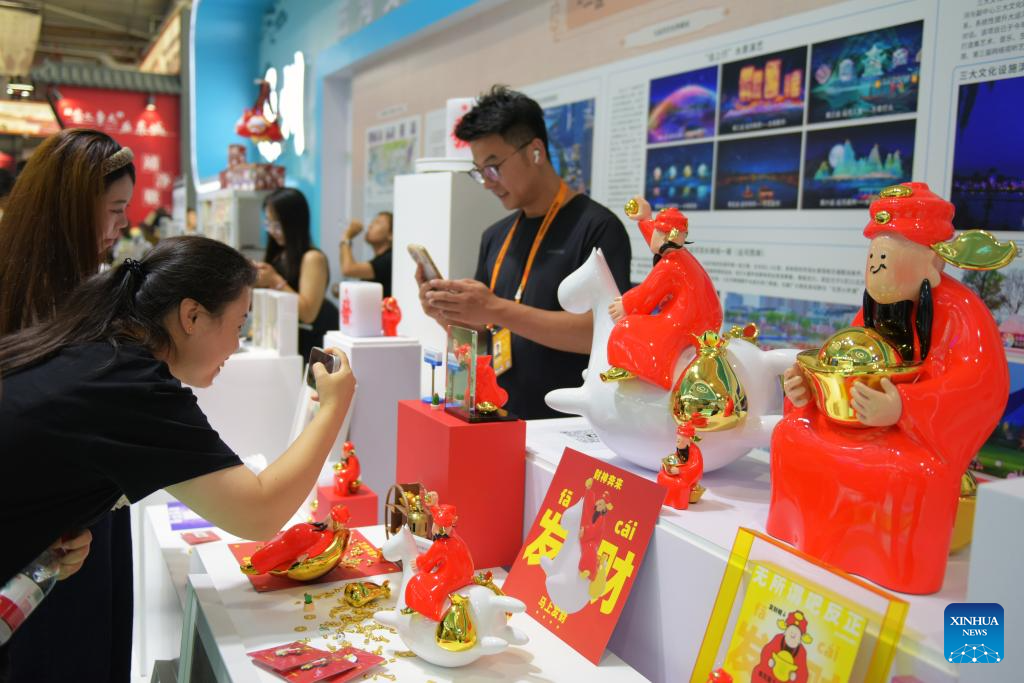 BEIJING, 12 septiembre, 2025 (Xinhua) -- Personas toman fotografías de productos culturales y creativos exhibidos en la Feria Internacional de Comercio de Servicios de China (CIFTIS, por sus siglas en inglés) 2025, en Beijing, capital de China, el 12 de septiembre de 2025. La CIFTIS 2025 se lleva a cabo del 10 al 14 de septiembre en el Parque Shougang en Beijing. La feria de este año presenta una amplia gama de productos culturales y creativos, muy populares entre los visitantes. (Xinhua/Zhang Xinjing)