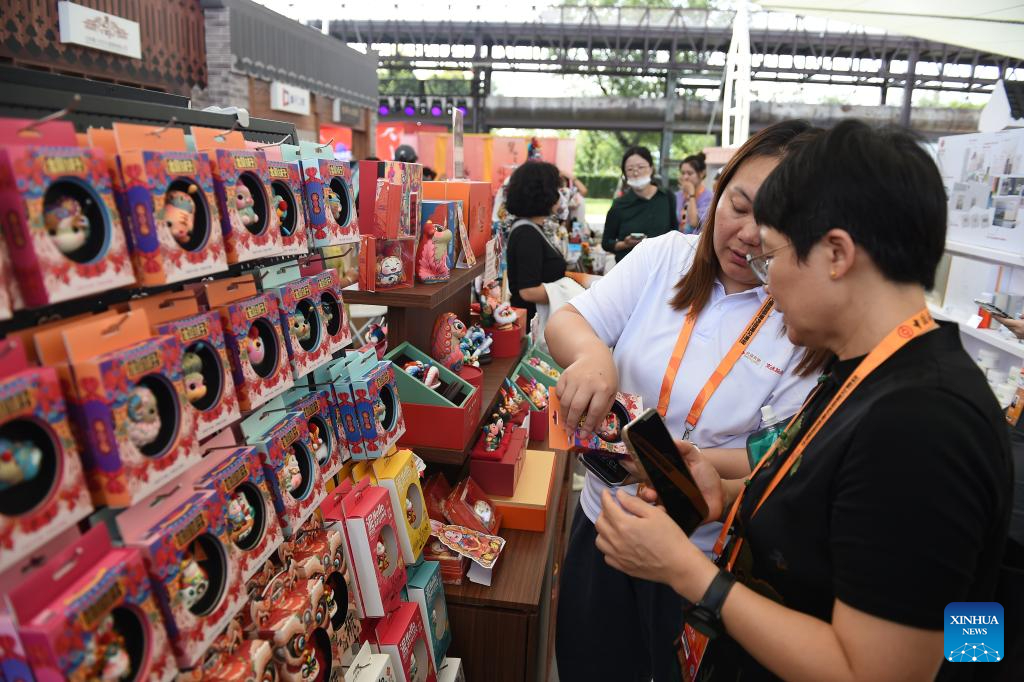 BEIJING, 12 septiembre, 2025 (Xinhua) -- Imagen del 11 de septiembre de 2025 de personas seleccionando productos culturales y creativos exhibidos en el área de exposición "Regalo de Beijing" de la Feria Internacional de Comercio de Servicios de China (CIFTIS, por sus siglas en inglés) 2025, en Beijing, capital de China. La CIFTIS 2025 se lleva a cabo del 10 al 14 de septiembre en el Parque Shougang en Beijing. La feria de este año presenta una amplia gama de productos culturales y creativos, muy populares entre los visitantes. (Xinhua/Liu Lingyi)