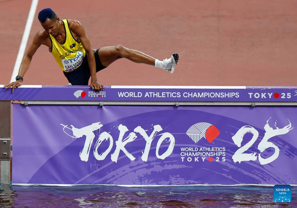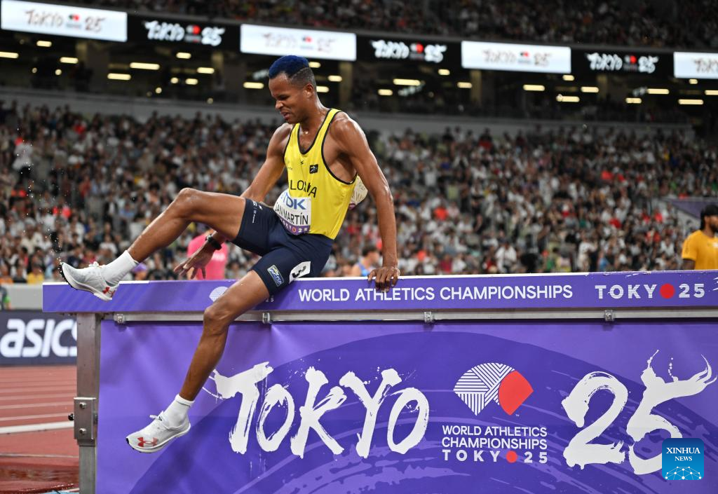 TOKIO, 13 septiembre, 2025 (Xinhua) -- Carlos San Martín, de Colombia, compite durante las eliminatorias de 3000 m obstáculos masculinos en el Campeonato Mundial de Atletismo 2025, en Tokio, Japón, el 13 de septiembre de 2025. (Xinhua/Song Yanhua)