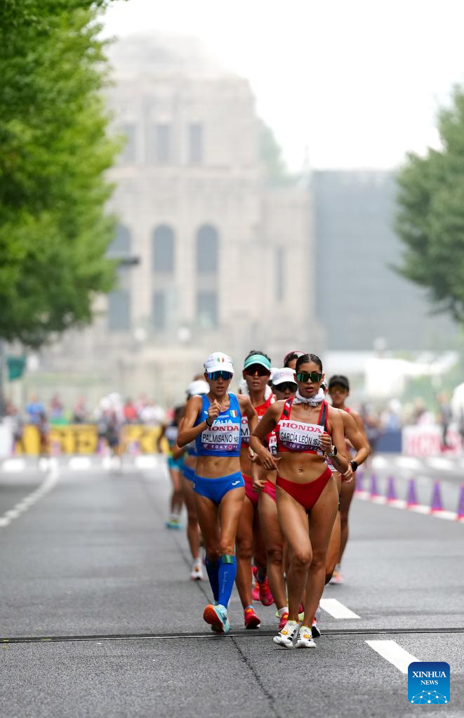 TOKIO, 13 septiembre, 2025 (Xinhua) -- Kimberly García León (frente), de Perú, compite durante la final de 35 km de marcha femenina en el Campeonato Mundial de Atletismo 2025, en Tokio, Japón, el 13 de septiembre de 2025. (Xinhua/Jia Haocheng)