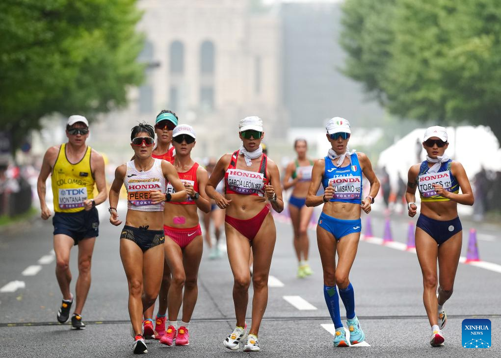 TOKIO, 13 septiembre, 2025 (Xinhua) -- Kimberly García León (3-d), de Perú, compite durante la final de 35 km de marcha femenina en el Campeonato Mundial de Atletismo 2025, en Tokio, Japón, el 13 de septiembre de 2025. (Xinhua/Jia Haocheng)