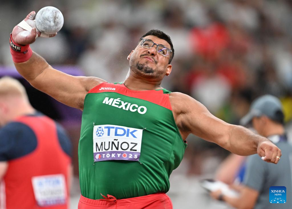 TOKIO, 13 septiembre, 2025 (Xinhua) -- Uziel Muñoz, de México, compite durante la final de lanzamiento de peso masculino en el Campeonato Mundial de Atletismo 2025, en Tokio, Japón, el 13 de septiembre de 2025. (Xinhua/Song Yanhua)