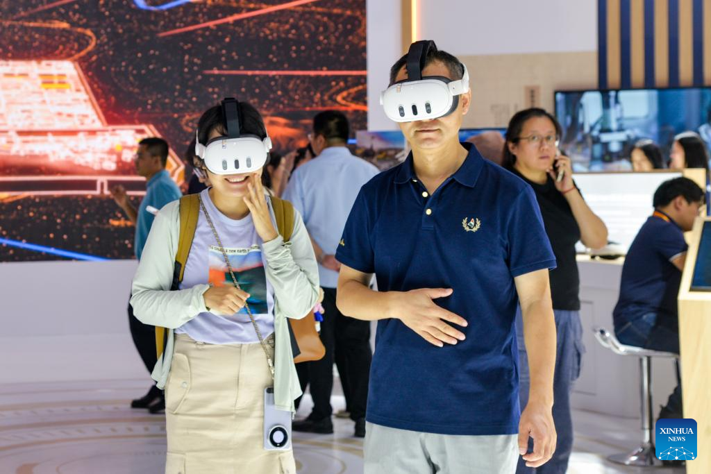 BEIJING, 13 septiembre, 2025 (Xinhua) -- Imagen del 12 de septiembre de 2025 de visitantes observando la exposición "Esta es la Shang" con dispositivos de realidad mixta en el área de exposición de Servicios Culturales y Turísticos de la Feria Internacional de Comercio de Servicios de China (CIFTIS, por sus siglas en inglés) 2025, en el Parque Shougang, en Beijing, capital de China. En la CIFTIS 2025, una variedad de tecnologías de vanguardia han enriquecido la exposición, proporcionando experiencias culturales y turísticas más interactivas e inmersivas para los visitantes. (Xinhua/Xu Qin)