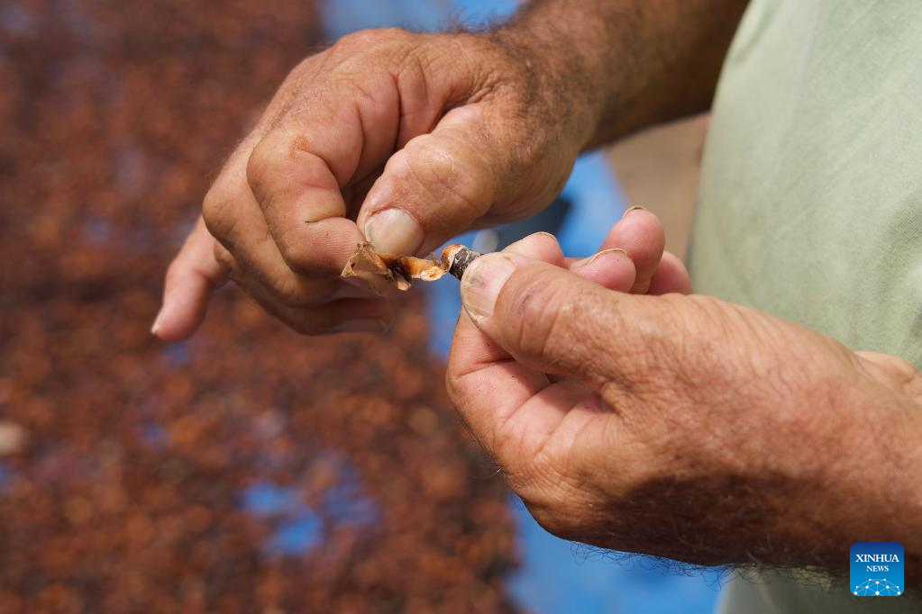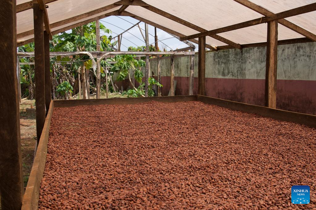 PARA, 11 septiembre, 2025 (Xinhua) -- Imagen del 10 de septiembre de 2025 de granos de cacao secándose al sol en una fábrica de chocolate, en Medicilandia, estado de Pará, Brasil. Ubicado en el norte de Brasil, el estado de Pará es la mayor área productora de cacao de Brasil, con una producción anual de aproximadamente 150.000 toneladas de cacao en grano, de las cuales el 95 por ciento es exportado. (Xinhua/Zhou Yongsui)