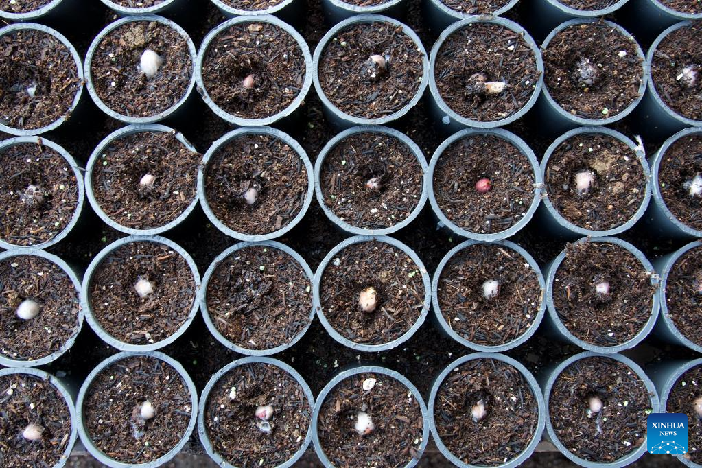 PARA, 11 septiembre, 2025 (Xinhua) -- Imagen del 9 de septiembre de 2025 de una agricultora plantando semillas de cacao en un vivero de árboles de cacao, en Brasil Novo, estado de Pará, Brasil. Ubicado en el norte de Brasil, el estado de Pará es la mayor área productora de cacao de Brasil, con una producción anual de aproximadamente 150.000 toneladas de cacao en grano, de las cuales el 95 por ciento es exportado. (Xinhua/Zhou Yongsui)