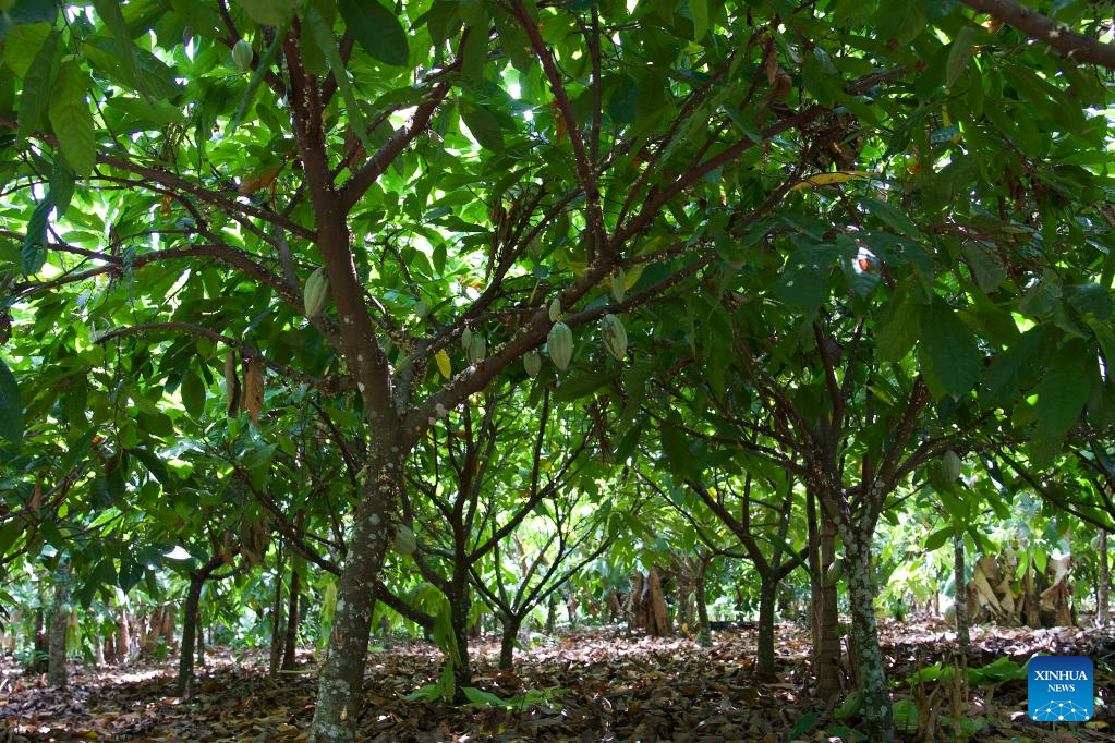 PARA, 11 septiembre, 2025 (Xinhua) -- Imagen del 10 de septiembre de 2025 del sistema agroforestal en un huerto agroforestal de cacao, en Medicilandia, estado de Pará, Brasil. Ubicado en el norte de Brasil, el estado de Pará es la mayor área productora de cacao de Brasil, con una producción anual de aproximadamente 150.000 toneladas de cacao en grano, de las cuales el 95 por ciento es exportado. (Xinhua/Zhou Yongsui)