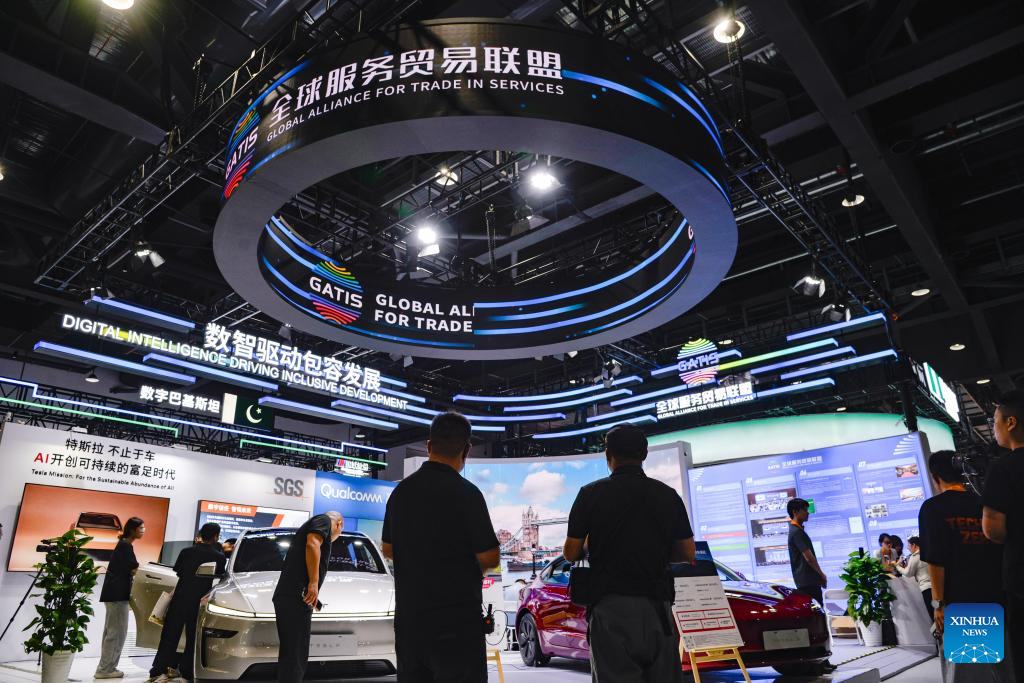 BEIJING, 11 septiembre, 2025 (Xinhua) -- Imagen del 10 de septiembre de 2025 del estand de la Alianza Global para el Comercio de Servicios de las exposiciones temáticas durante la Feria Internacional de Comercio de Servicios de China (CIFTIS, por sus siglas en inglés) 2025 en el Parque Shougang, en Beijing, capital de China. La CIFTIS 2025 abrió sus puertas el miércoles en Beijing bajo el tema "Abrazar tecnologías inteligentes, impulsar el comercio de servicios". La magnitud de la CIFTIS de este año es vasta, con la participación de 85 países y organizaciones internacionales, entre ellos Australia, Alemania y la Organización Mundial de la Propiedad Intelectual, y Australia ostenta por primera vez el título de País Invitado de Honor. (Xinhua/Xu Qin)