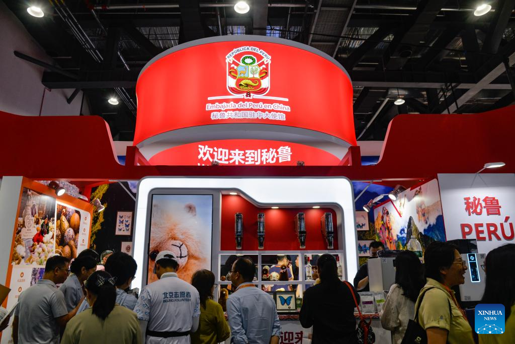 BEIJING, 11 septiembre, 2025 (Xinhua) -- Imagen del 10 de septiembre de 2025 de visitantes acudiendo al estand peruano de las exposiciones temáticas durante la Feria Internacional de Comercio de Servicios de China (CIFTIS, por sus siglas en inglés) 2025 en el Parque Shougang, en Beijing, capital de China. La CIFTIS 2025 abrió sus puertas el miércoles en Beijing bajo el tema "Abrazar tecnologías inteligentes, impulsar el comercio de servicios". La magnitud de la CIFTIS de este año es vasta, con la participación de 85 países y organizaciones internacionales, entre ellos Australia, Alemania y la Organización Mundial de la Propiedad Intelectual, y Australia ostenta por primera vez el título de País Invitado de Honor. (Xinhua/Xu Qin)