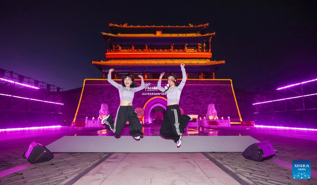 BEIJING, 15 septiembre, 2025 (Xinhua) -- Imagen del 14 de septiembre de 2025 de corredores posando para fotografías previo a la ceremonia de apertura del Campamento de Entrenamiento del Maratón de Beijing, para el próximo Maratón de Beijing 2025, en Beijing, capital de China. El Maratón de Beijing 2025 comenzará el 2 de noviembre. (Xinhua/Bai Xuefei)