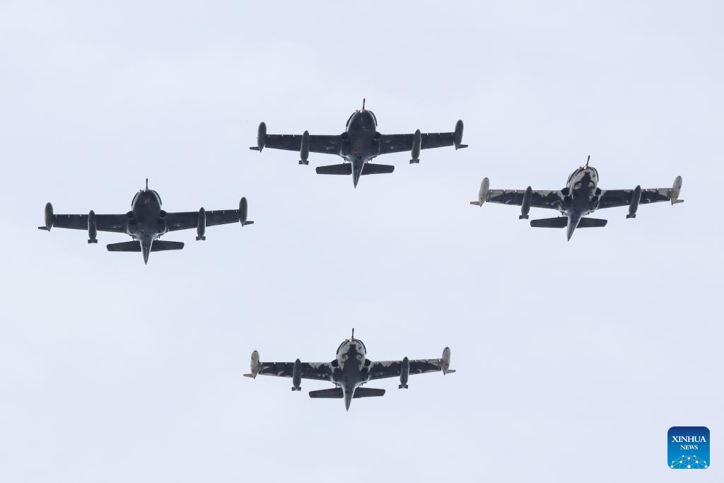 Aviones de la Fuerza Aérea de El Salvador sobrevuelan el desfile por el 204 aniversario del Día de Independencia de El Salvador, en el departamento de San Salvador, capital de El Salvador, el 15 de septiembre de 2025. Miles de salvadoreños colmaron el lunes las calles de San Salvador, la capital, para conmemorar los 204 años de independencia de Centroamérica de España, en un desfile cívico militar que, pese a las lluvias nocturnas, inició puntualmente a las 8:00 hora local con un ambiente de música, color y orgullo nacional.(Xinhua/Alexander Peña)