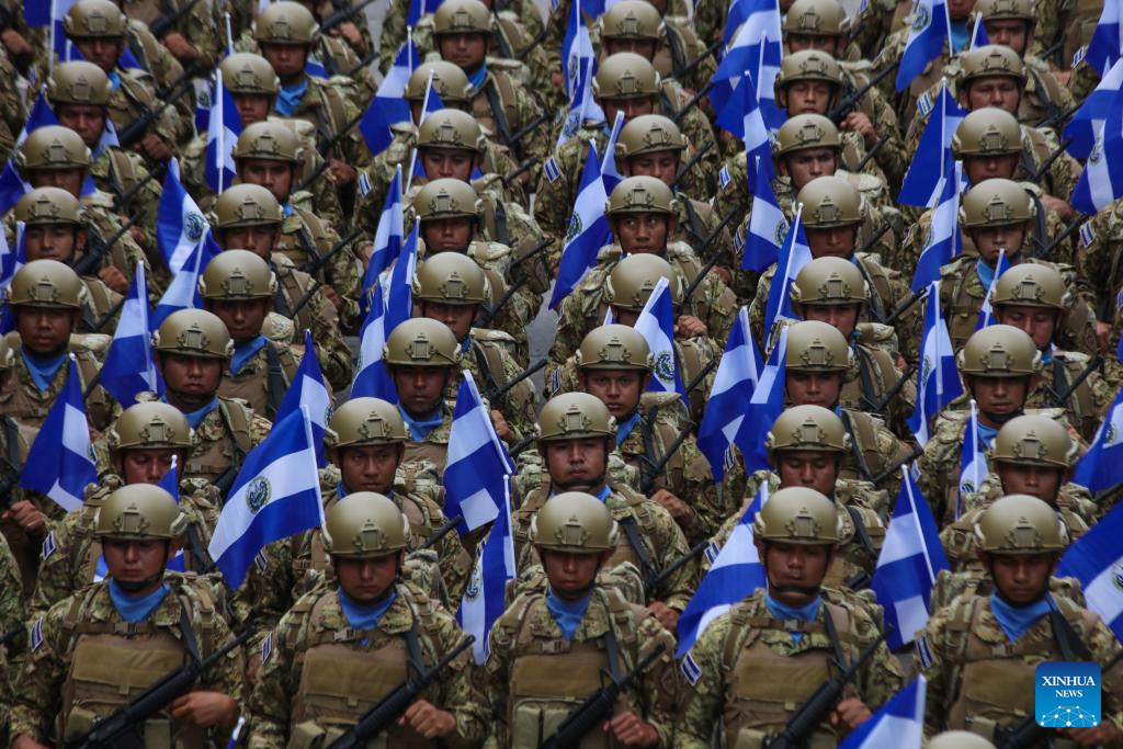 SAN SALVADOR, 15 septiembre, 2025 (Xinhua) -- Soldados de las Fuerzas Armadas de El Salvador marchan durante un desfile por la celebración del 204 aniversario del Día de Independencia de El Salvador, en el departamento de San Salvador, capital de El Salvador, el 15 de septiembre de 2025. Miles de salvadoreños colmaron el lunes las calles de San Salvador, la capital, para conmemorar los 204 años de independencia de Centroamérica de España, en un desfile cívico militar que, pese a las lluvias nocturnas, inició puntualmente a las 8:00 hora local con un ambiente de música, color y orgullo nacional.(Xinhua/Alexander Peña)