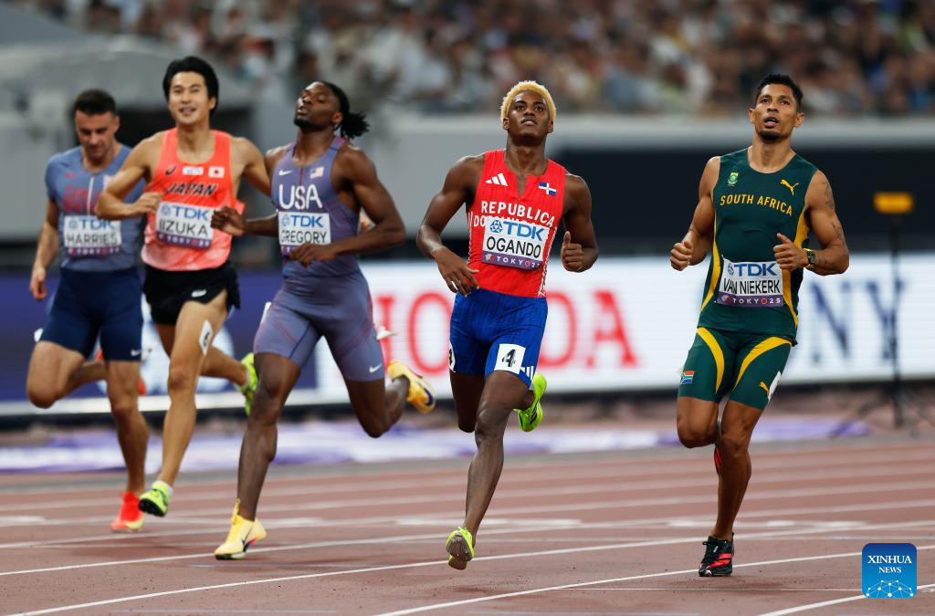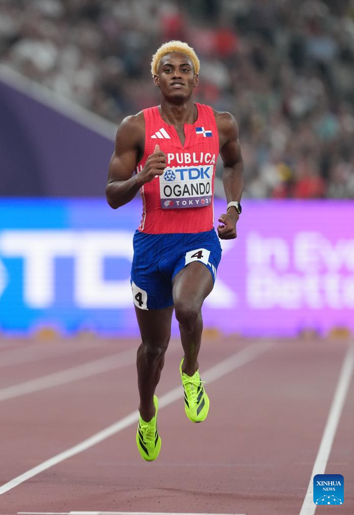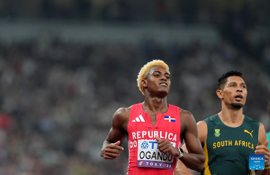 TOKIO, 17 septiembre, 2025 (Xinhua) -- Alexander Ogando, de República Dominicana, compite durante las eliminatorias de 200m masculinos, en el Campeonato Mundial de Atletismo de 2025, en Tokio, Japón, el 17 de septiembre de 2025. (Xinhua/Jiang Han)