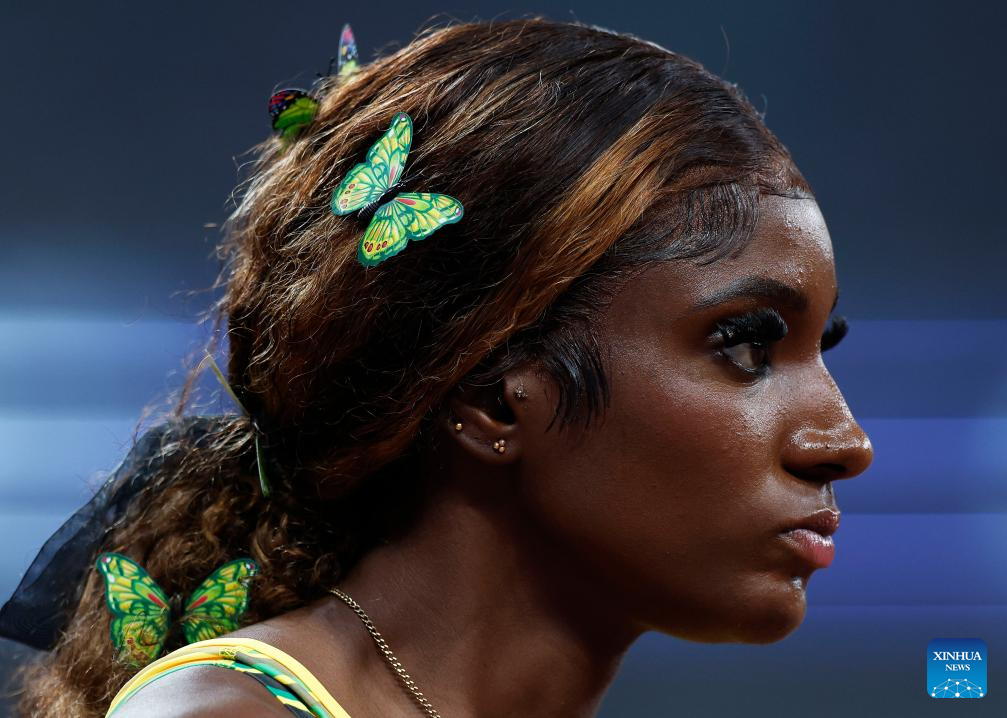 TOKIO, 17 septiembre, 2025 (Xinhua) -- Shiann Salmon, de Jamaica, reacciona previo a la semifinal de 400m con vallas femeninos, en el Campeonato Mundial de Atletismo 2025, en Tokio, Japón, el 17 de septiembre de 2025. (Xinhua/Wang Lili)
