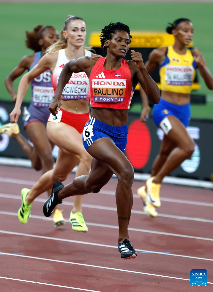 TOKIO, 17 septiembre, 2025 (Xinhua) -- Imagen del 16 de septiembre de 2025 de Marileidy Paulino (frente), de República Dominicana, compitiendo durante la semifinal de 400m femeninos, en el Campeonato Mundial de Atletismo de 2025, en Tokio, Japón. (Xinhua/Wang Lili)