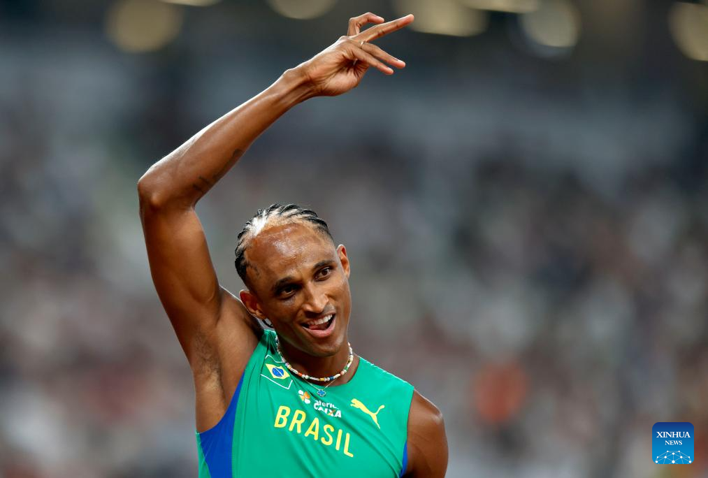 TOKIO, 17 septiembre, 2025 (Xinhua) -- Alison Dos Santos, de Brasil, reacciona al término de la semifinal de 400m con vallas masculinos, en el Campeonato Mundial de Atletismo de 2025, en Tokio, Japón, el 17 de septiembre de 2025. (Xinhua/Wang Lili)