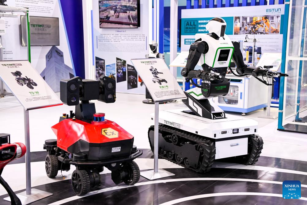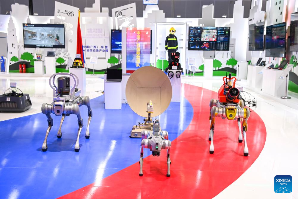 NANNING, 17 septiembre, 2025 (Xinhua) -- Dispositivos de extinción de incendios con tecnología de inteligencia artificial son vistos en el Centro Internacional de Convenciones y Exposiciones de Nanning, en Nanning, en la región autónoma de la etnia zhuang de Guangxi, en el sur de China, el 17 de septiembre de 2025. La 22ª Exposición China-ASEAN y a la Cumbre de Negocios e Inversiones China-ASEAN comenzaron aquí el miércoles. (Xinhua/Cao Yiming)