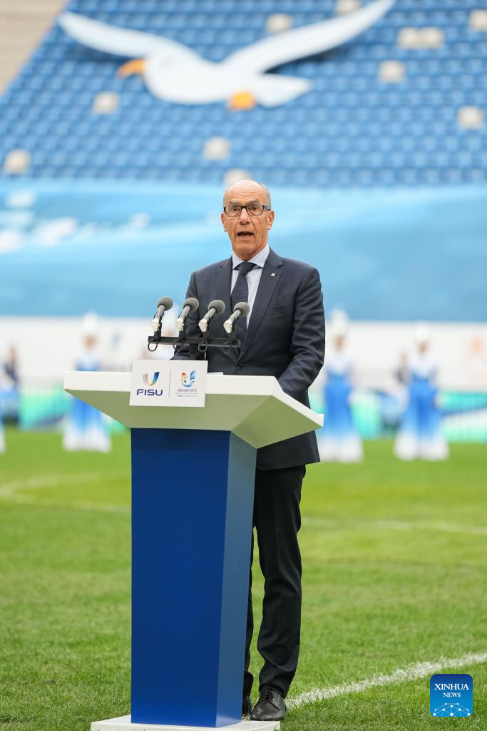DALIAN, 17 septiembre, 2025 (Xinhua) -- Leonz Eder, presidente de la FISU, pronuncia un discurso durante la ceremonia de inauguración de la Copa Mundial Universitaria de Fútbol de la FISU 2025 celebrada en el Estadio Suoyuwan, en Dalian, en la provincia de Liaoning, en el noreste de China, el 17 de septiembre de 2025. (Xinhua/Zheng Huansong)