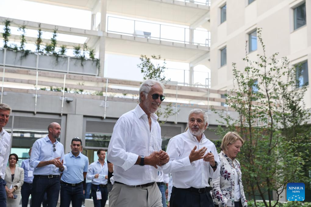 MILAN, 18, 2025 (Xinhua) -- Giovanni Malago (c), presidente del Comité Organizador de Milán Cortina 2026, visita la Villa Olímpica y Paralímpica de Milán Cortina 2026, en Milán, Italia, el 18 de septiembre de 2025. (Xinhua/Li Jing)