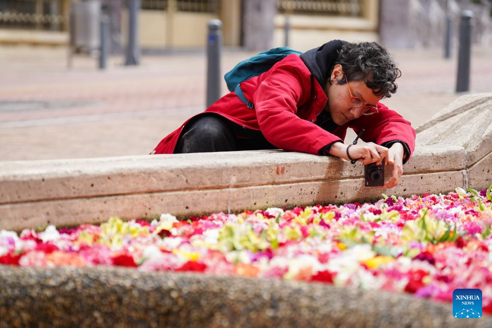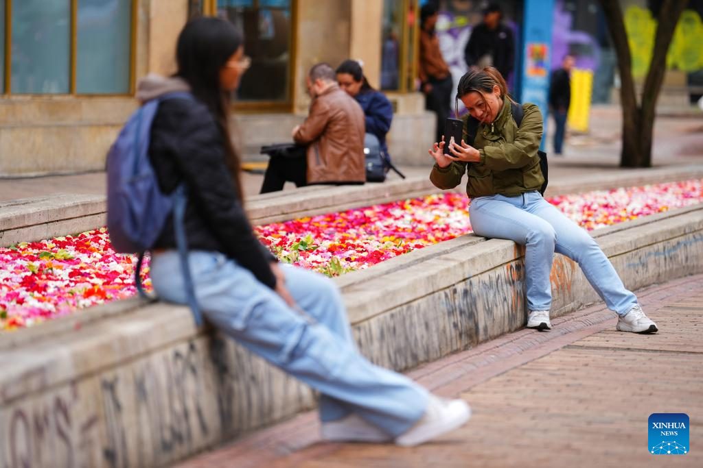 BOGOTA, 20 septiembre, 2025 (Xinhua) -- Una mujer toma una fotografía de la instalación floral "El Canto del Río" en el marco de la Bienal Internacional de Arte y Ciudad BOG25, en Bogotá, capital de Colombia, el 20 de septiembre de 2025. (Xinhua/Andrés Moreno)