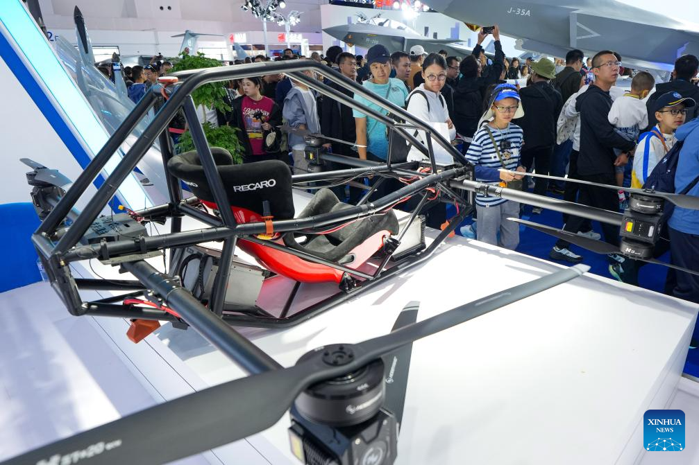 CHANGCHUN, 20 septiembre, 2025 (Xinhua) -- Visitantes observan un avión eléctrico tripulado de despegue y aterrizaje vertical durante las actividades de la jornada de puertas abiertas de aviación 2025 de la Fuerza Aérea del Ejército Popular de Liberación (EPL) de China y el Salón Aeronáutico de Changchun, en Changchun, en la provincia de Jilin, en el noreste de China, el 20 de septiembre de 2025. El evento que se lleva a cabo aquí del 19 al 23 de septiembre, muestra de forma integral la historia y la modernización de la Fuerza Aérea del EPL a través de presentaciones de acrobacias aéreas, exposiciones de equipos y diversas actividades interactivas. (Xinhua/Xu Chang)