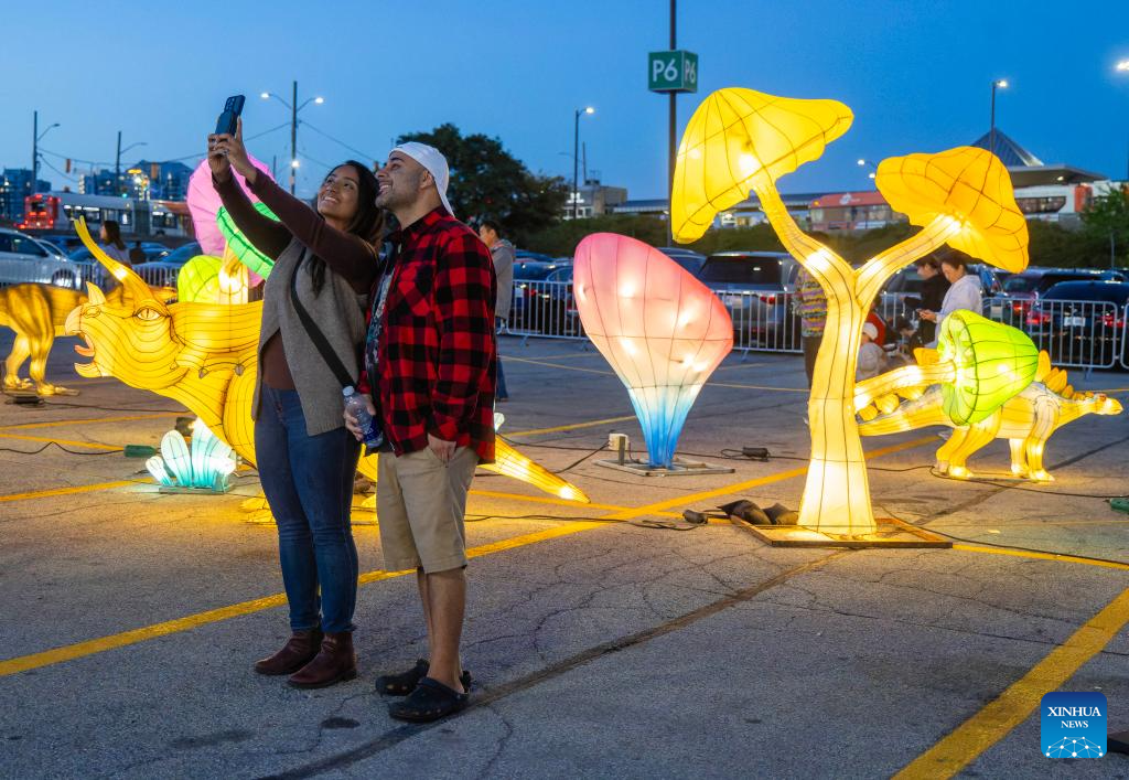 MISSISSAUGA, 20 septiembre, 2025 (Xinhua) -- Imagen del 19 de septiembre de 2025 de personas tomándose fotografías con linternas en el Festival del Medio Otoño y de las Linternas, en Mississauga, Ontario, Canadá. El festival de tres días de duración comenzó aquí el viernes para celebrar el próximo Festival del Medio Otoño. (Xinhua/Zou Zheng)