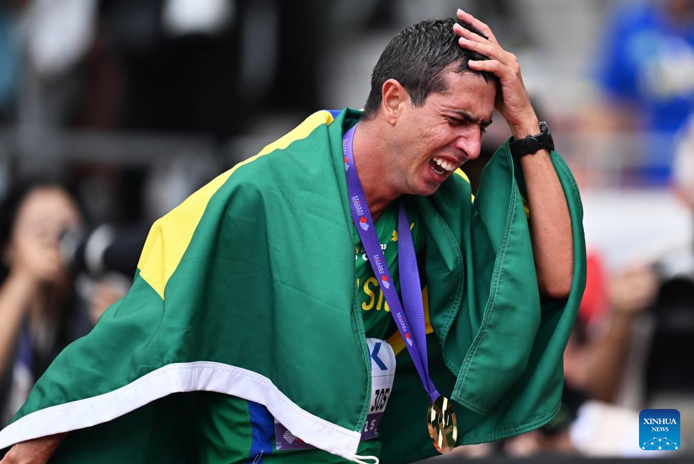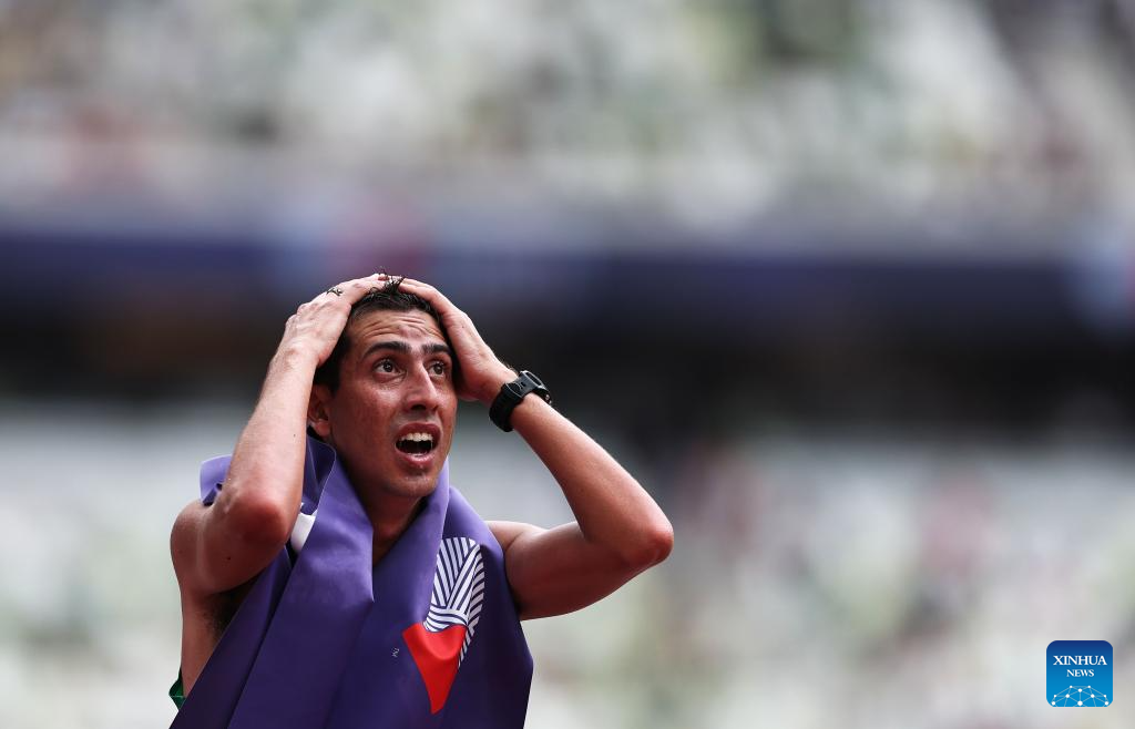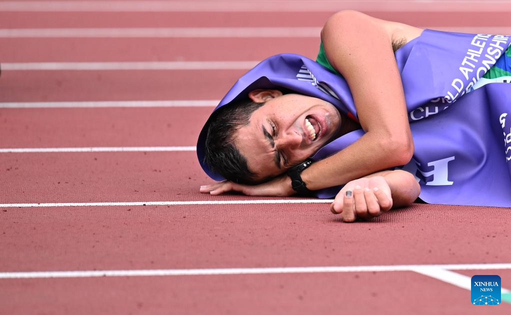 TOKIO, 20 septiembre, 2025 (Xinhua) -- El medallista de oro, Caio Bonfim, de Brasil, reacciona al término de la final de 20km de marcha masculina, en el Campeonato Mundial de Atletismo 2025, en Tokio, Japón, el 20 de septiembre de 2025. (Xinhua/Jia Haocheng)