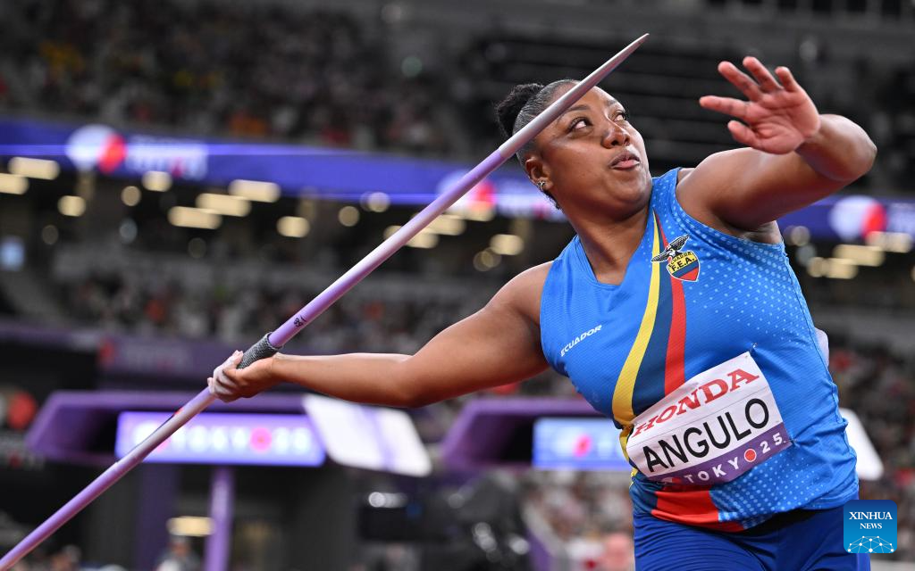 TOKIO, 20 septiembre, 2025 (Xinhua) -- Juleisy Angulo, de Ecuador, compite durante la final de lanzamiento de jabalina femenino, en el Campeonato Mundial de Atletismo 2025, en Tokio, Japón, el 20 de septiembre de 2025. (Xinhua/Song Yanhua)