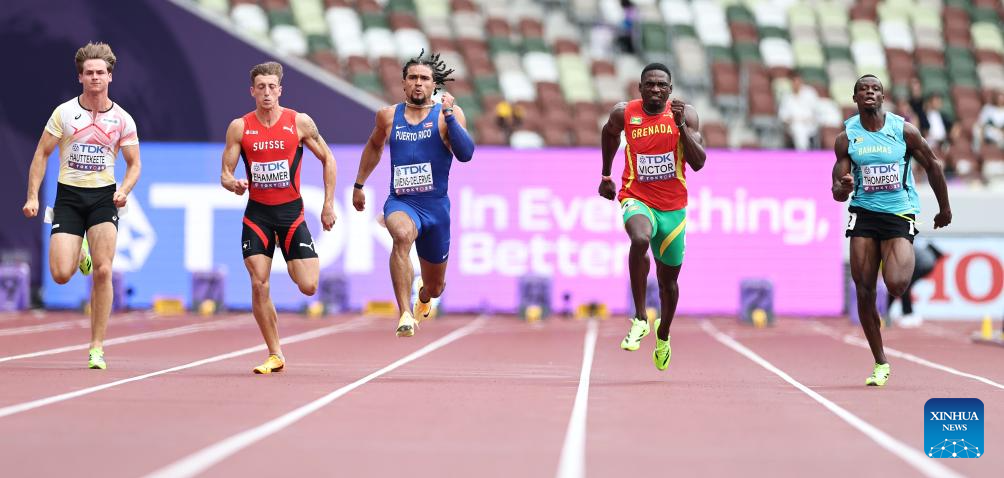 TOKIO, 20 septiembre, 2025 (Xinhua) -- (De izq. a der.) Jente Hauttekeete, de Bélgica, Simon Ehammer, de Suiza, Ayden Owens-Delerme, de Puerto Rico, Lindon Victor, de Granada, y Kendrick Thompson, de Bahamas, compiten durante la prueba de 100m del decatlón masculino, en el Campeonato Mundial de Atletismo 2025, en Tokio, Japón, el 20 de septiembre de 2025. (Xinhua/Jia Haocheng)