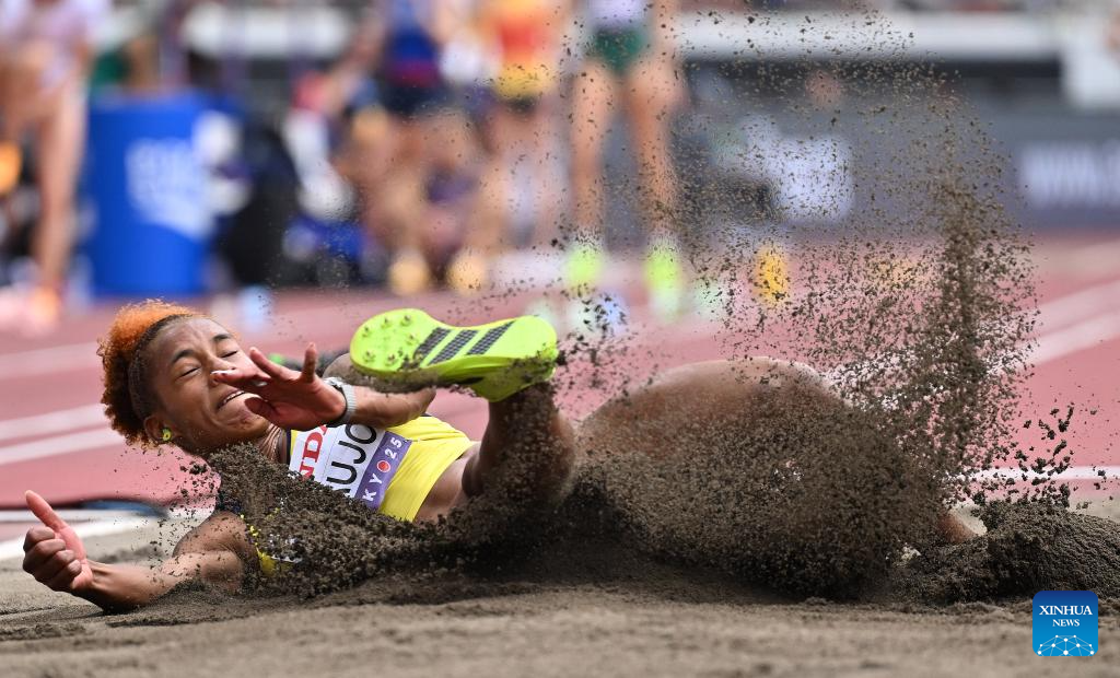 TOKIO, 20 septiembre, 2025 (Xinhua) -- Martha Araújo, de Colombia, compite durante la prueba de salto de longitud del heptatlón femenino, en el Campeonato Mundial de Atletismo 2025, en Tokio, Japón, el 20 de septiembre de 2025. (Xinhua/Song Yanhua)