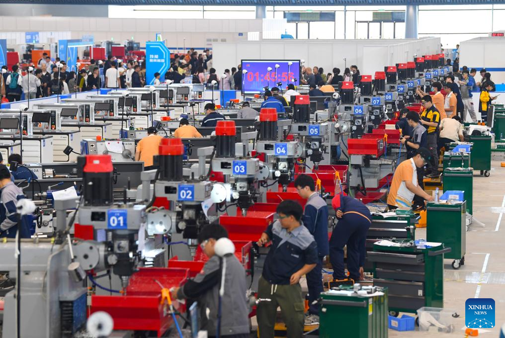 ZHENGZHOU, 20 septiembre, 2025 (Xinhua) -- Concursantes participan en un evento de mecánica industrial durante el tercer Concurso de Habilidades Vocacionales, en Zhengzhou, en la provincia de Henan, en el centro de China, el 20 de septiembre de 2025. El concurso consta de 106 eventos, con la participación de 3.420 competidores de todo el país. (Xinhua/Hao Yuan)