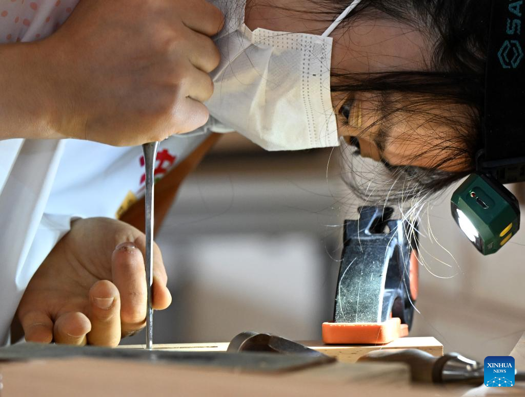 ZHENGZHOU, 20 septiembre, 2025 (Xinhua) -- Una concursante participa en un evento de fabricación de muebles durante el tercer Concurso de Habilidades Vocacionales, en Zhengzhou, en la provincia de Henan, en el centro de China, el 20 de septiembre de 2025. El concurso consta de 106 eventos, con la participación de 3.420 competidores de todo el país. (Xinhua/Hao Yuan)