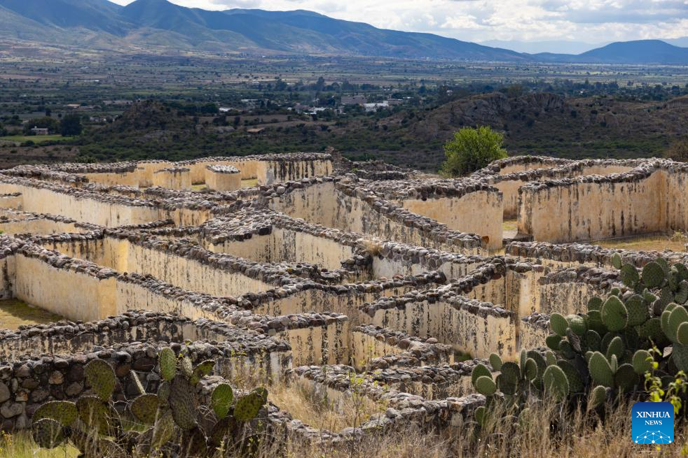 OAXACA, 20 septiembre, 2025 (Xinhua) -- Imagen del 17 de septiembre de 2025 de la Zona Arqueológica de Mitla, en el estado de Oaxaca, México. Las Cuevas Prehistóricas de Yagul y Mitla, en la región de los Valles Centrales de Oaxaca, se encuentran en la ladera norte del Valle de Tlacolula, en el centro subtropical de Oaxaca y consisten en dos complejos arqueológicos prehispánicos y una serie de cuevas prehistóricas y abrigos rocosos. Fueron inscritas en la Lista del Patrimonio Mundial de la UNESCO en 2010. (Xinhua/Li Mengxin)