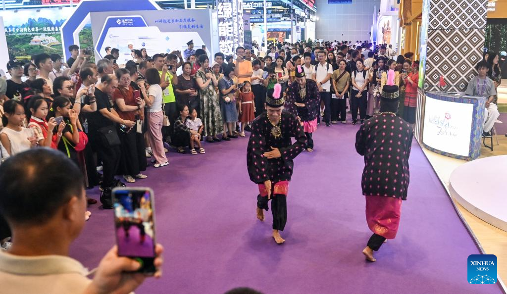 NANNING, 20 septiembre, 2025 (Xinhua) -- Visitantes observan una presentación malasia durante la 22ª Exposición China-ASEAN, en Nanning, en la región autónoma de la etnia zhuang de Guangxi, en el sur de China, el 20 de septiembre de 2025. La exposición abrió sus puertas al público el sábado. (Xinhua/Zhang Ailin)