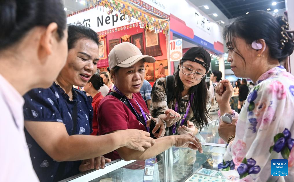 NANNING, 20 septiembre, 2025 (Xinhua) -- Visitantes seleccionan accesorios durante la 22ª Exposición China-ASEAN, en Nanning, en la región autónoma de la etnia zhuang de Guangxi, en el sur de China, el 20 de septiembre de 2025. La exposición abrió sus puertas al público el sábado. (Xinhua/Lu Boan)