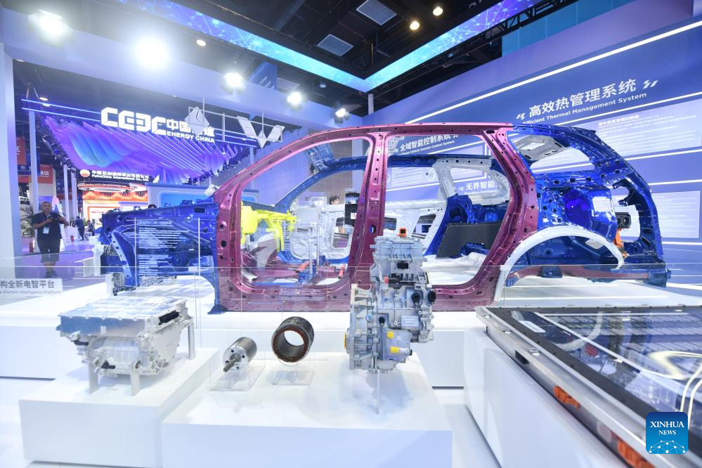 NANNING, 20 septiembre, 2025 (Xinhua) -- Imagen del 20 de septiembre de 2025 de un estand exhibiendo un vehículo de nueva energía producido en Liuzhou durante la 22ª Exposición China-ASEAN, en Nanning, en la región autónoma de la etnia zhuang de Guangxi, en el sur de China. En la 22ª Exposición China-ASEAN en curso, los vehículos de nueva energía producidos en Liuzhou de Guangxi, y potenciados con inteligencia artificial atraen amplia atención tanto de empresas como de visitantes nacionales y extranjeros. (Xinhua/Hu Qiusi)