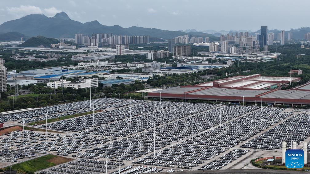 NANNING, 20 septiembre, 2025 (Xinhua) -- Vista aérea tomada con un dron el 8 de septiembre de 2025 de una base logística automotriz, en Liuzhou, en la región autónoma de la etnia zhuang de Guangxi, en el sur de China. En la 22ª Exposición China-ASEAN en curso, los vehículos de nueva energía producidos en Liuzhou de Guangxi, y potenciados con inteligencia artificial atraen amplia atención tanto de empresas como de visitantes nacionales y extranjeros. (Xinhua/Huang Xiaobang)