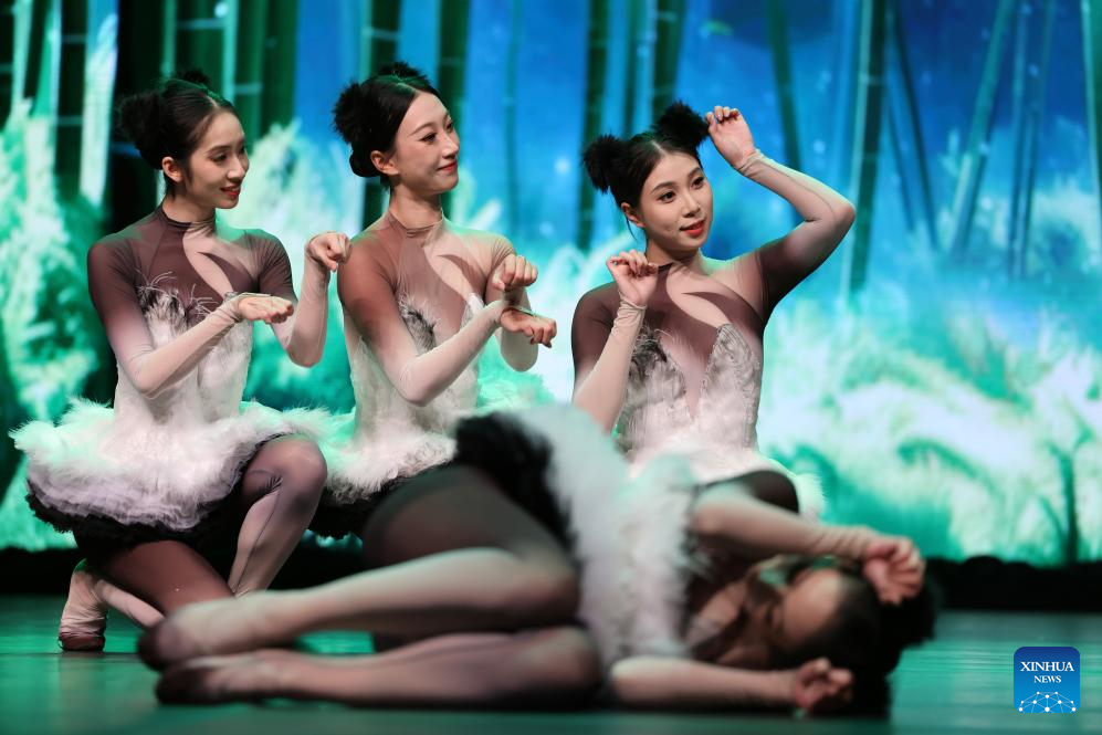 MANAMA, 21 septiembre, 2025 (Xinhua) -- Imagen del 20 de septiembre de 2025 de actrices de la compañía artística de Chengdu durante una presentación titulada "Compartiendo la belleza de la luna" en el Teatro Nacional de Bahréin, en Manama, Bahréin. (Xinhua/Wang Haizhou)