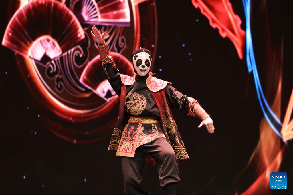 MANAMA, 21 septiembre, 2025 (Xinhua) -- Imagen del 20 de septiembre de 2025 de un actor de la compañía artística de Chengdu durante una presentación titulada "Compartiendo la belleza de la luna" en el Teatro Nacional de Bahréin, en Manama, Bahréin. (Xinhua/Wang Haizhou)