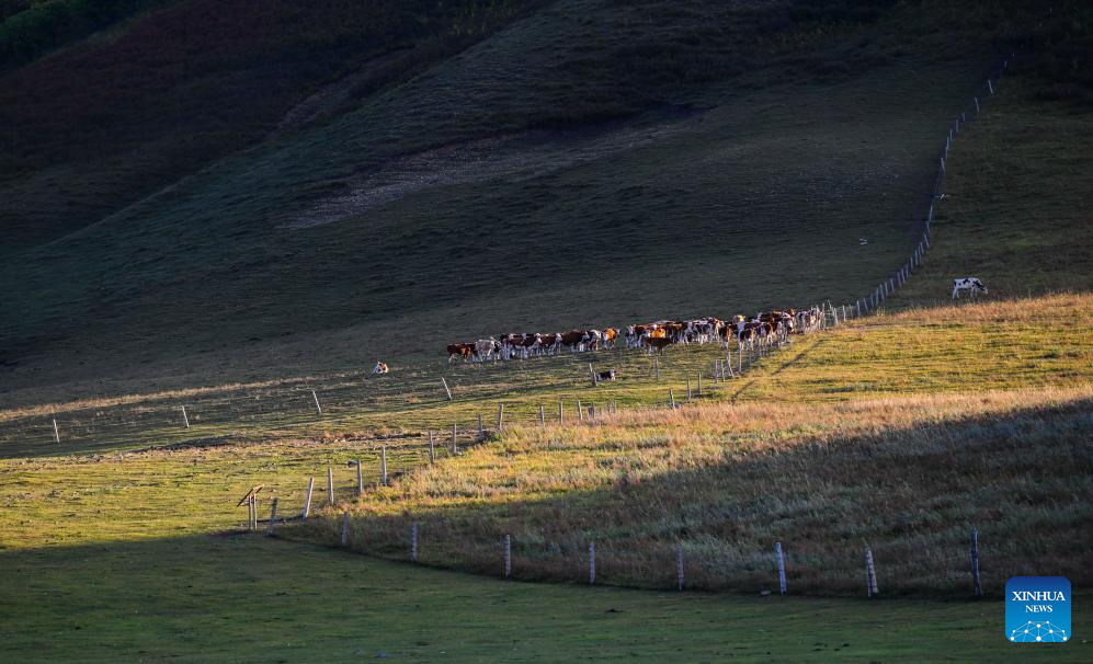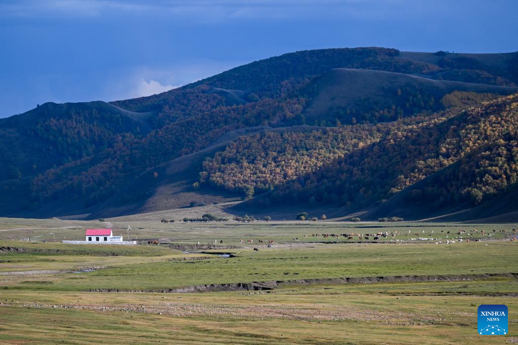TONGLIAO, 21 septiembre, 2025 (Xinhua) -- Imagen del 20 de septiembre de 2025 de caballos pastando en la reserva natural nacional de la Montaña Hanshan, en la bandera de Jarud, en la ciudad de Tongliao, en la región autónoma de Mongolia Interior, en el norte de China. Ubicada en la bandera de Jarud, en la ciudad de Tongliao, en la región autónoma de Mongolia Interior, en el norte de China, la reserva natural nacional de la Montaña Hanshan se creó en 2013. Situada al sur de las montañas del Gran Khingan, sirve como refugio ecológico y zona de conservación de agua para las praderas de Horqin. (Xinhua/Lian Zhen)