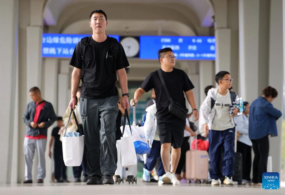 PU'ER, 21 septiembre, 2025 (Xinhua) -- Imagen del 20 de septiembre de 2025 de pasajeros vistos en la Estación de Ferrocarriles de Pu'er, en la ciudad de Pu'er, en la provincia de Yunnan, en el suroeste de China. Hasta el 20 de septiembre, el ferrocarril China-Laos ha transportado a más de 59 millones de pasajeros desde su inauguración en diciembre de 2021, de acuerdo con China Railway Kunming Group Co., Ltd. (Xinhua/Xing Guangli)