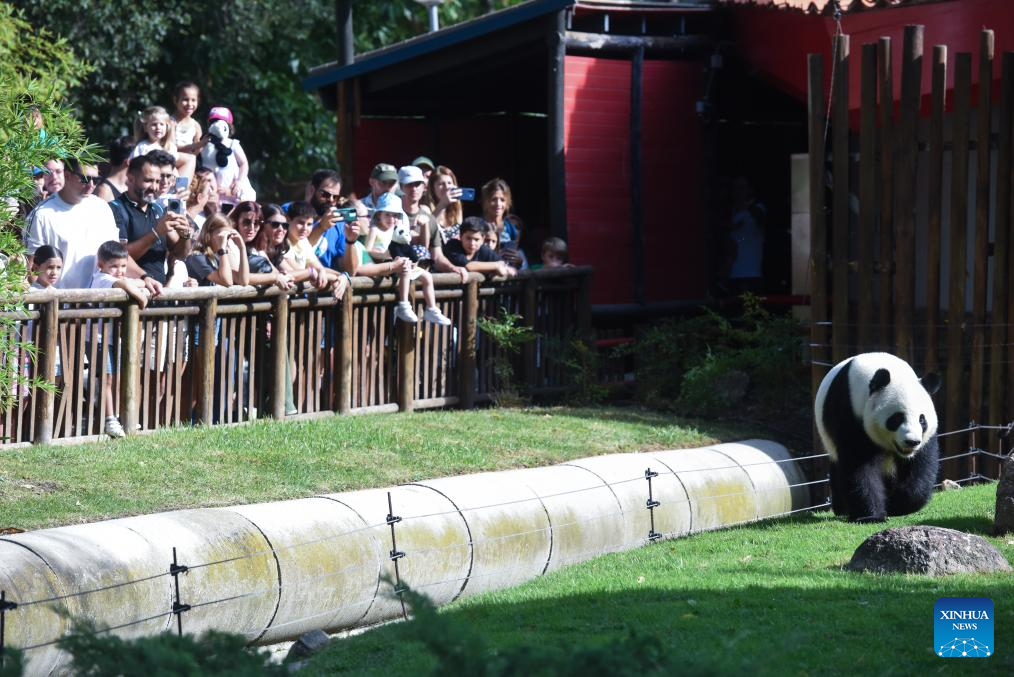 MADRID, 21 septiembre, 2025 (Xinhua) -- Imagen del 20 de septiembre de 2025 de visitantes observando al panda gigante Jin Xi en el Zoo Aquarium de Madrid, en Madrid, España. El zoológico celebró el sábado una serie de actividades culturales y educativas, entre ellas presentaciones acrobáticas, para celebrar el quinto cumpleaños de dos pandas gigantes. El macho Jin Xi y la hembra Zhu Yu, ambos nacidos en 2020, llegaron al zoológico el 29 de abril del año pasado. (Xinhua/Gustavo Valiente)