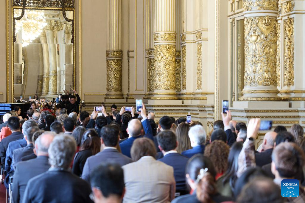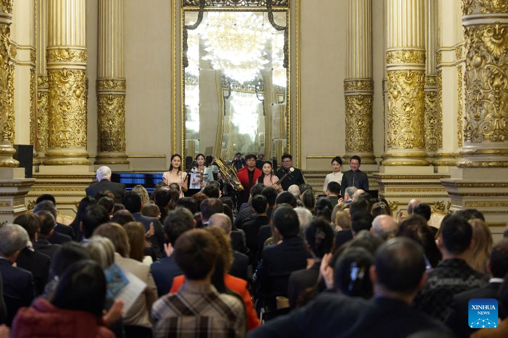 BUENOS AIRES, 22 sep (Xinhua) -- El espectáculo de música folclórica "Balada de la Pipa: Viaje Musical por China", engalanó hoy lunes el Salón Dorado del emblemático Teatro Colón de Argentina, propuesta cultural que causó emoción a un público que se deleitó con instrumentos tradicionales chinos, como la pipa, el yangqin, la flauta y el xiao.